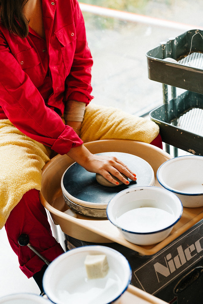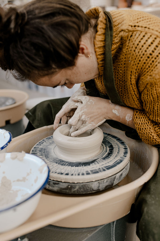 In deze eenmalige initiatie maak je kennis met de draaischijf. We zetten samen de eerste stappen in het proces van klei tot afgewerkte pot. Onder onze begeleiding leer jij de klei kneden, centreren en optrekken om te komen tot jouw eigen potje(s). Wij werken de stappen die daarop volgen (afdraaien en glazuren) verder af voor jou.