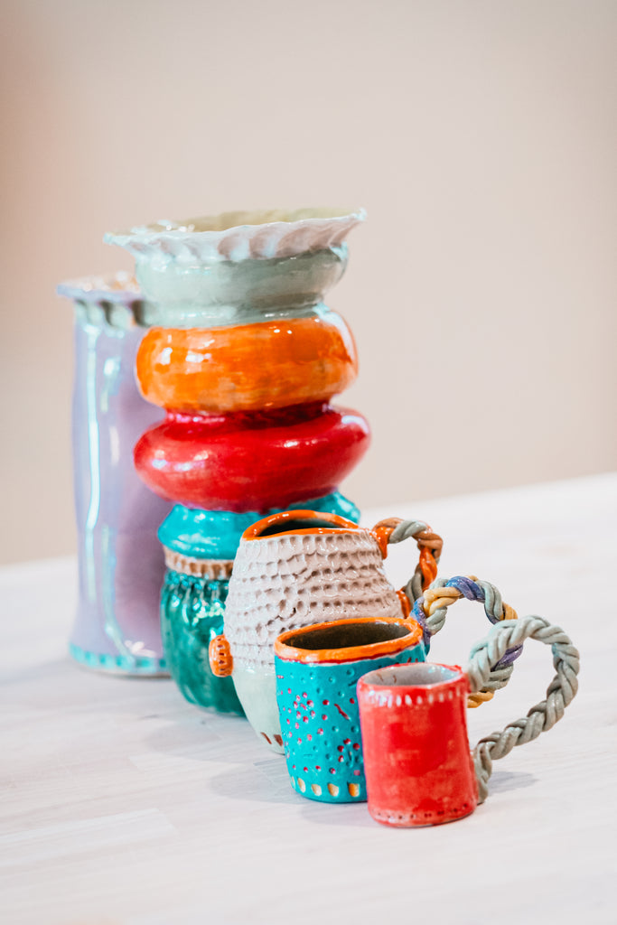 Ons nieuw atelier laat ons toe om binnen eenzelfde reeks de combinatie van draaien én opbouw aan te bieden. Fantastisch voor wie niet kan kiezen tussen de twee disciplines, wie benieuwd is om ze allebei te ontdekken/beter onder de knie te krijgen én om ze te combineren. Opbouwen op een gedraaide pot, hoe zalig is dees!?